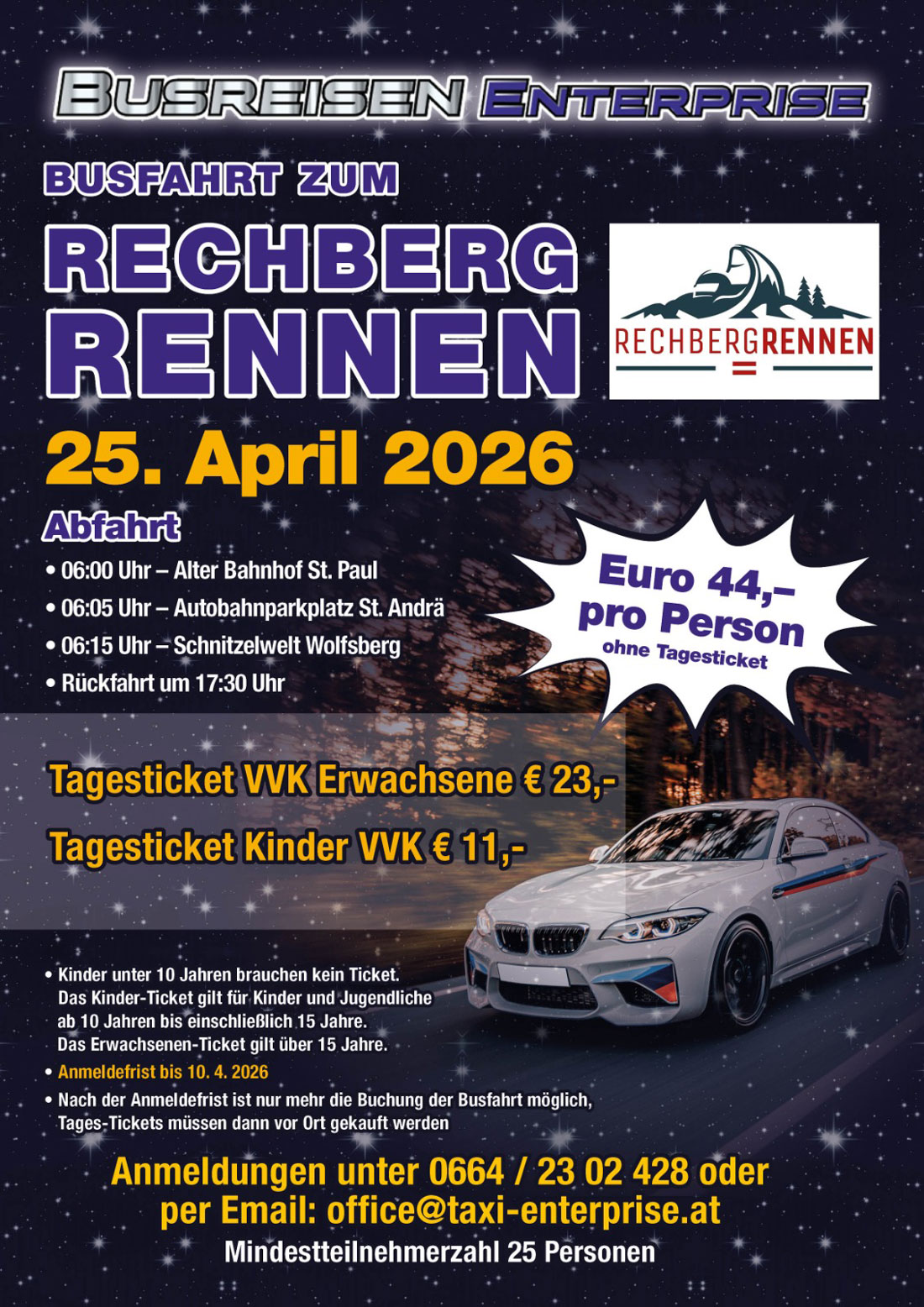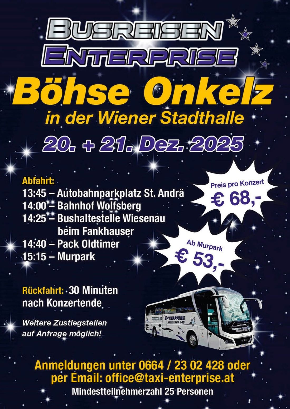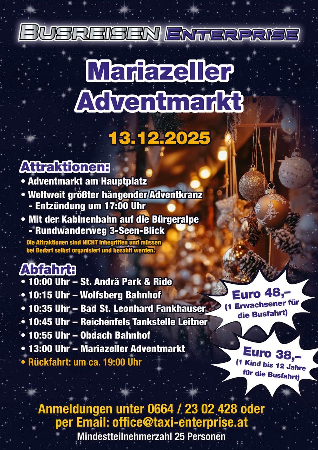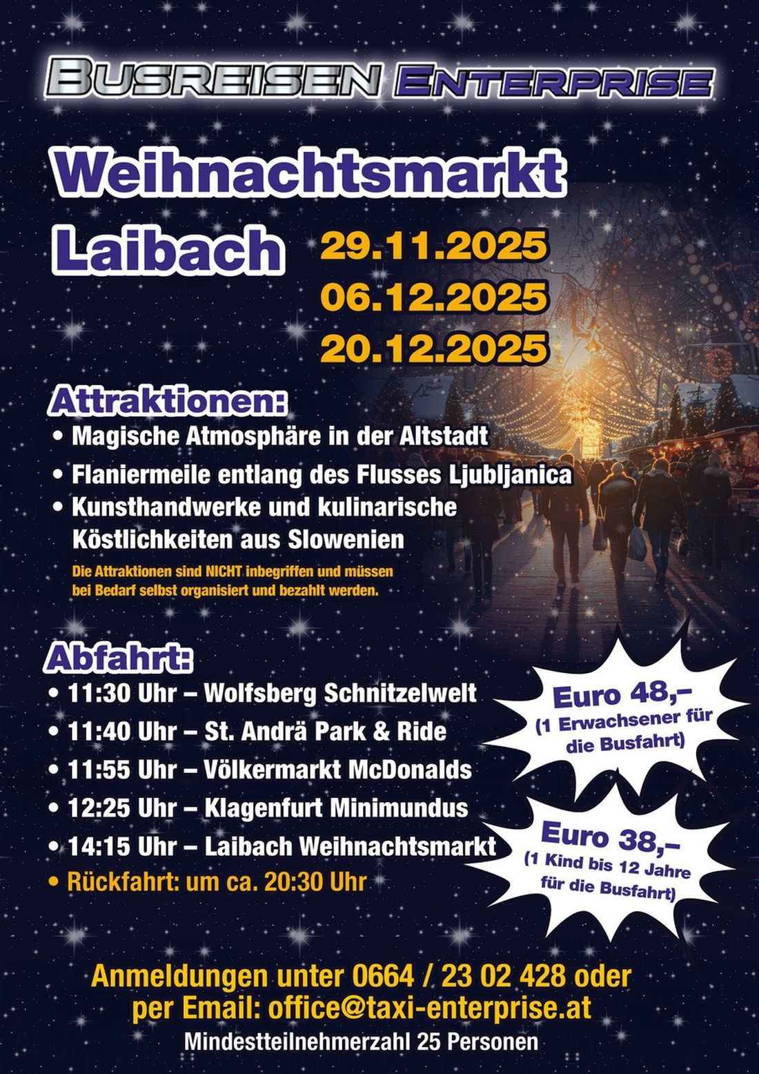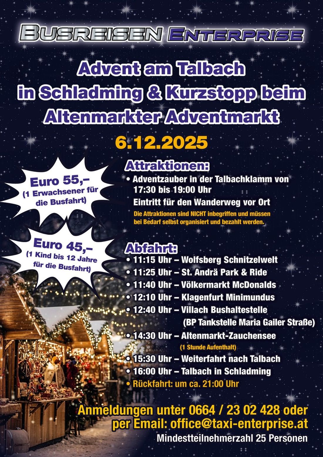 Taxi & Busreisen Enterprise ist Ihr Partner für Busreisen im Raum Wolfsberg, Völkermarkt & ganz Kärnten.